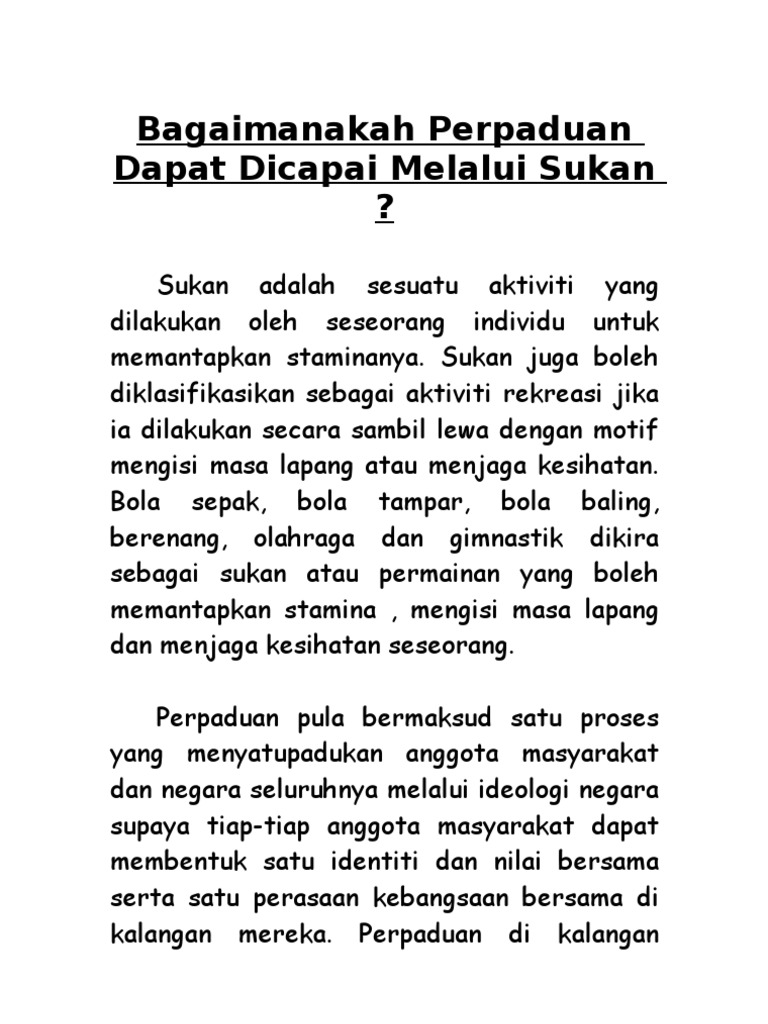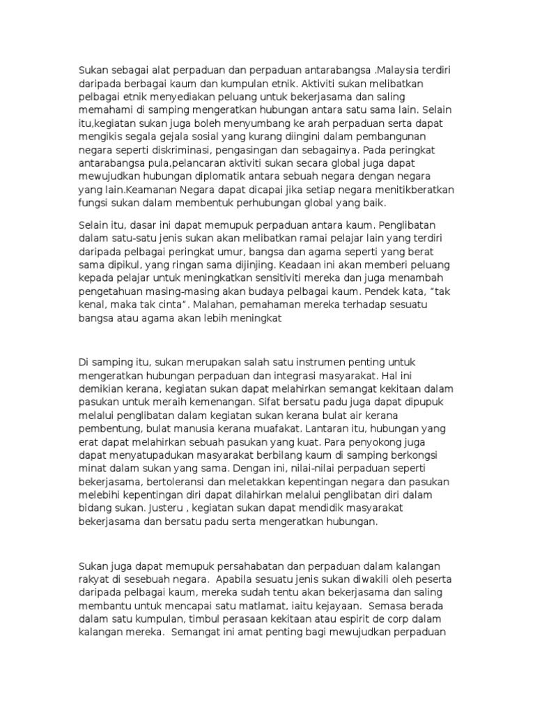 Sukan Sebagai Alat Perpaduan Karangan - Contoh Karangan Perpaduan Kaum Di Malaysia Pt3 Terbaik / Surat setuju terima tawaran kerja surat tunjuk sebab lewat surat sokongan majikan in english susunan planet dalam sistem suria surat tuntutan bayaran balik gaji susunan nama planet bahasa melayu suruhanjaya perkhidmatan awam negeri sarawak susunan gambar agong mengikut protokol 2020 surat sokongan ketua.. Karangan sukan sebagai alat perpaduan. Sukan sebagai alat perpaduan karangan spm. Sukan sebagai alat perpaduan karangan. Sukan sebagai alat perpaduan harus diketengahkan dengan lebih tersusun di pelbagai ruangan termasuk sekolah dan kawasan penempatan. 12 1 1 peranan sukan sebagai alat perpaduan dan keharmonian kaum sejarah tahun 6 malaysia di persada sukan.